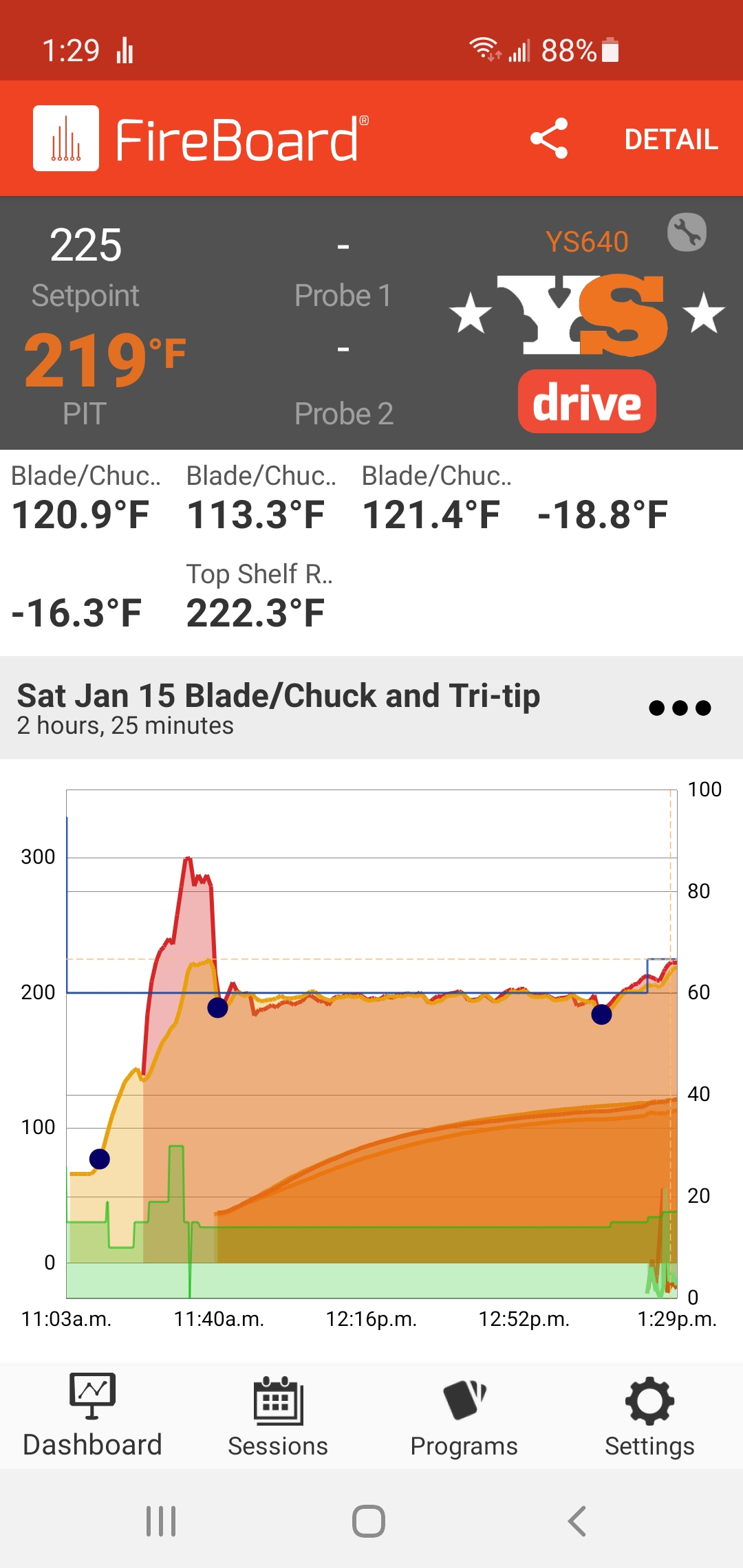 Ignore the negative temps shown on the attached. I had a bad probe attached to my Fireboard which caused these to show.