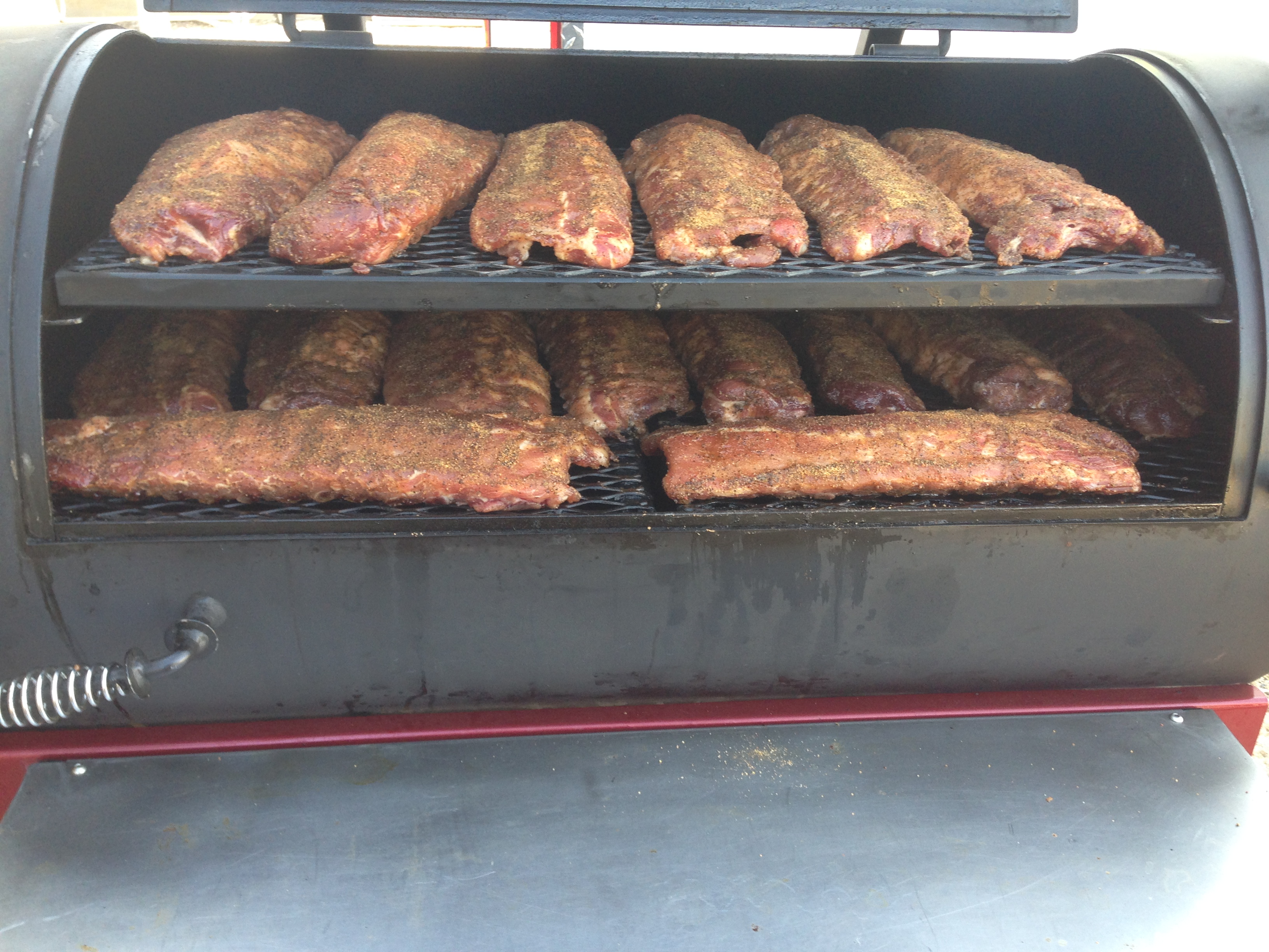 Cooking 16 racks of 4 pound and up baby back ribs on a Yoder YS1500.