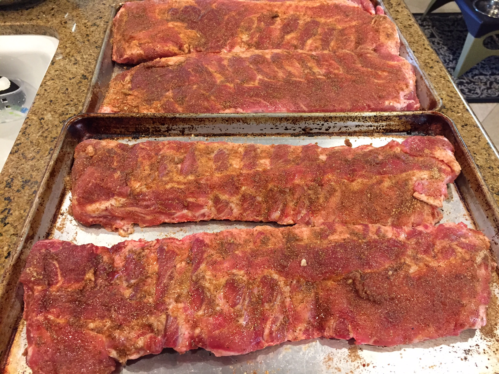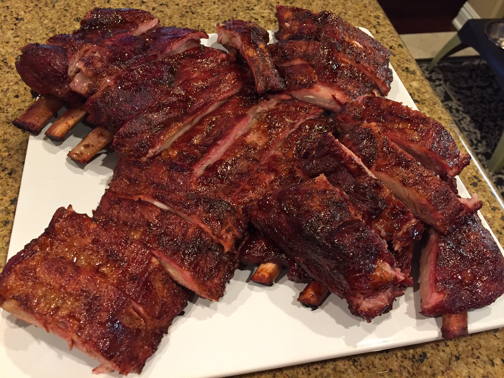 After much research and great information from this forum and others, I took the plunge and made two racks of St. Louis ribs and two racks of baby backs this weekend. Rubbed, rested, and cooked for about 5 hrs total (4 for the baby backs) Pics below.