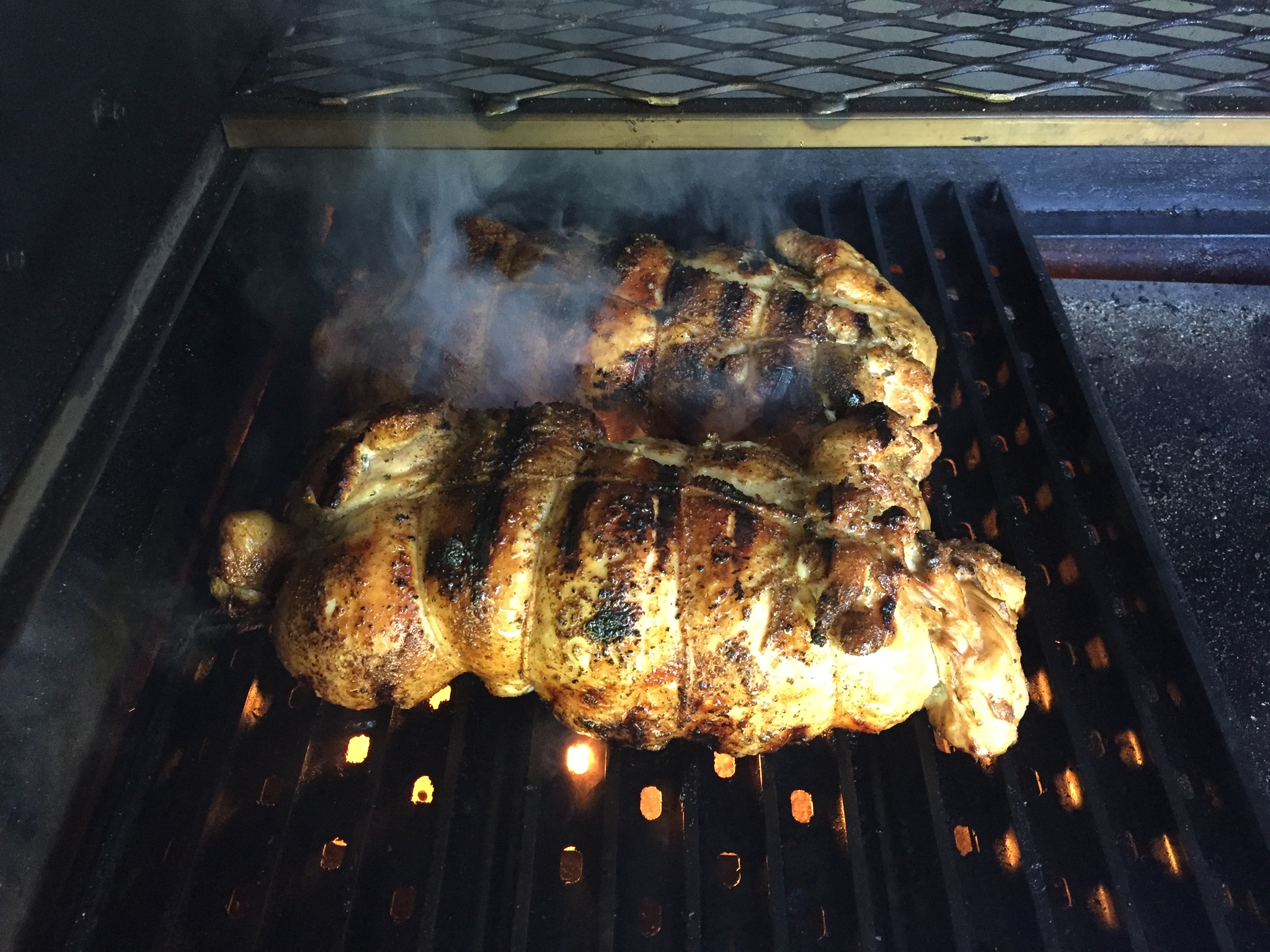 Smoke at 225 until internal temp hits 145. Remove from cooker and set up for direct grilling. Seat all sides to get the finished color you prefer. Place on upper shelf until you hit desired finish temp. I am happiest with 150. Wrap and hold in a warm oven at 140 until serving time.