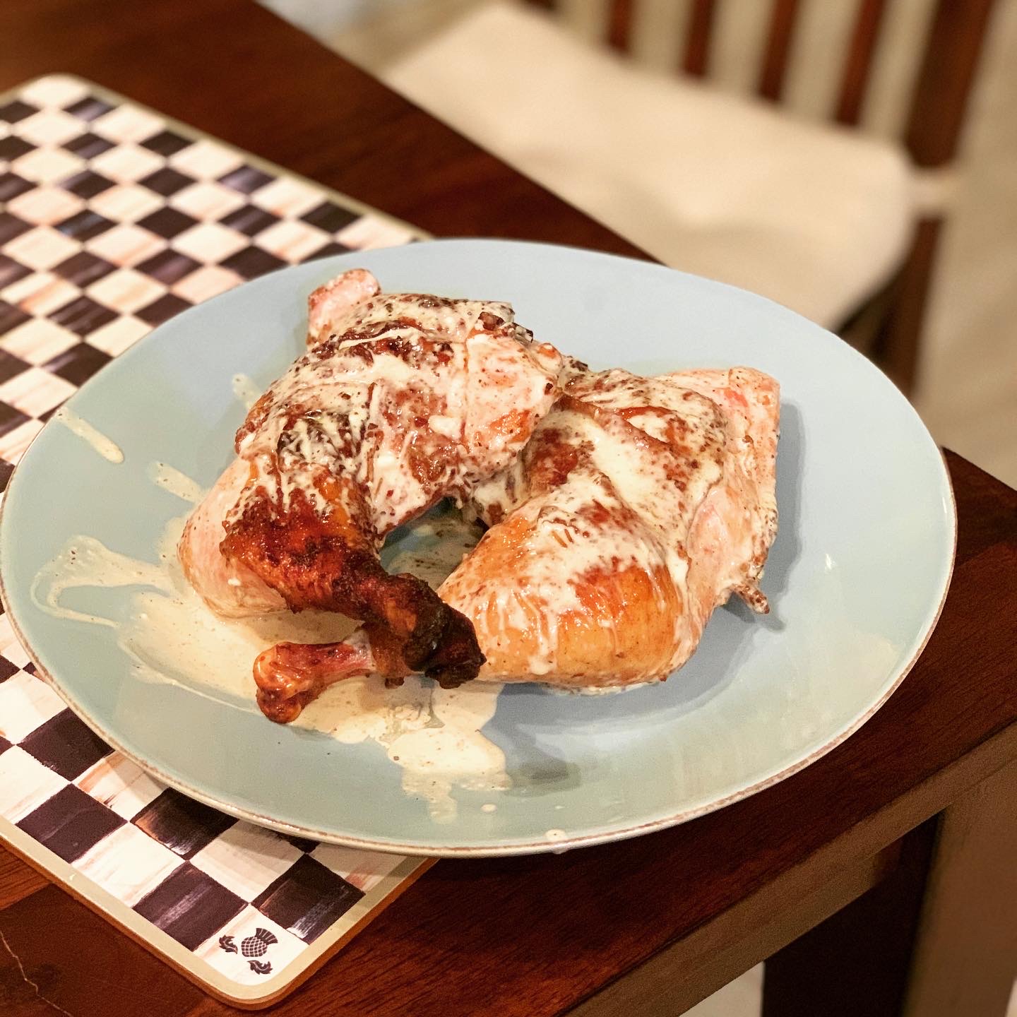here's a few pics of my first smoke on my yoder ys640, smoked chicken quarters with that famous white alabama sauce. Used the recipe from chef malcom from howtobbqright youtube channel. Really easy and delicious. Chicken was cooked perfectly, I would say the rub is a little salty so next time I may either just use left of it or add more sugar to the rub. The alabama sauce is tangy, imagine a very tangy ranch dressing. I thought it was good and complimented the chicken well. I've actually never had that alabama white bbq sauce before so Im not entirely sure i know what good sauce tastes like but i liked it. If anyone out there has any insight id appreciate it. keep smoking peeps!