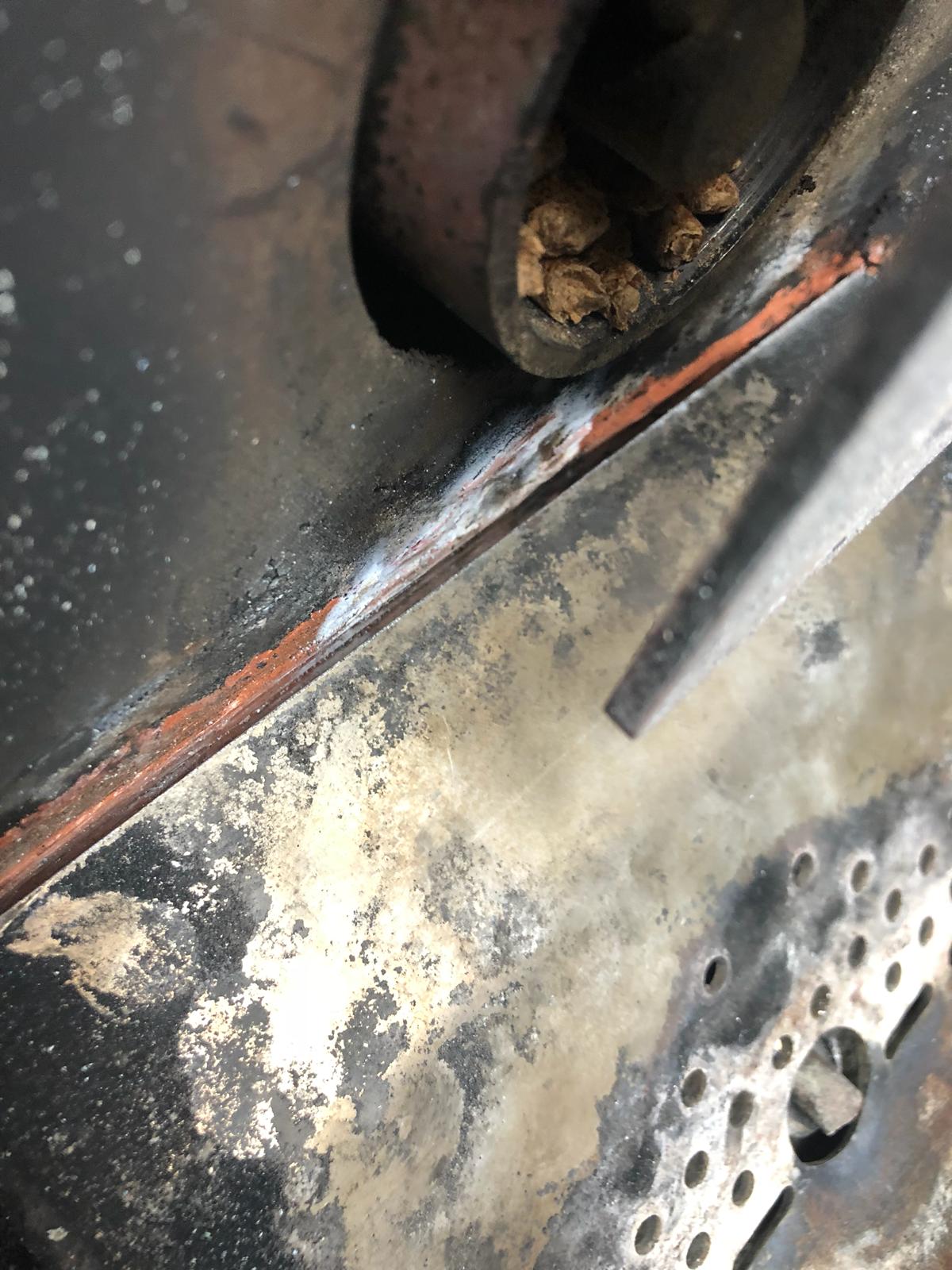 Apple pellets from the brand Lumberjack. Is the burn grate situated in the right way? I will remove the current sealent and replace it tomorrow. Theres a white spot from the heat in one of the photos. I don’t think thats normal.