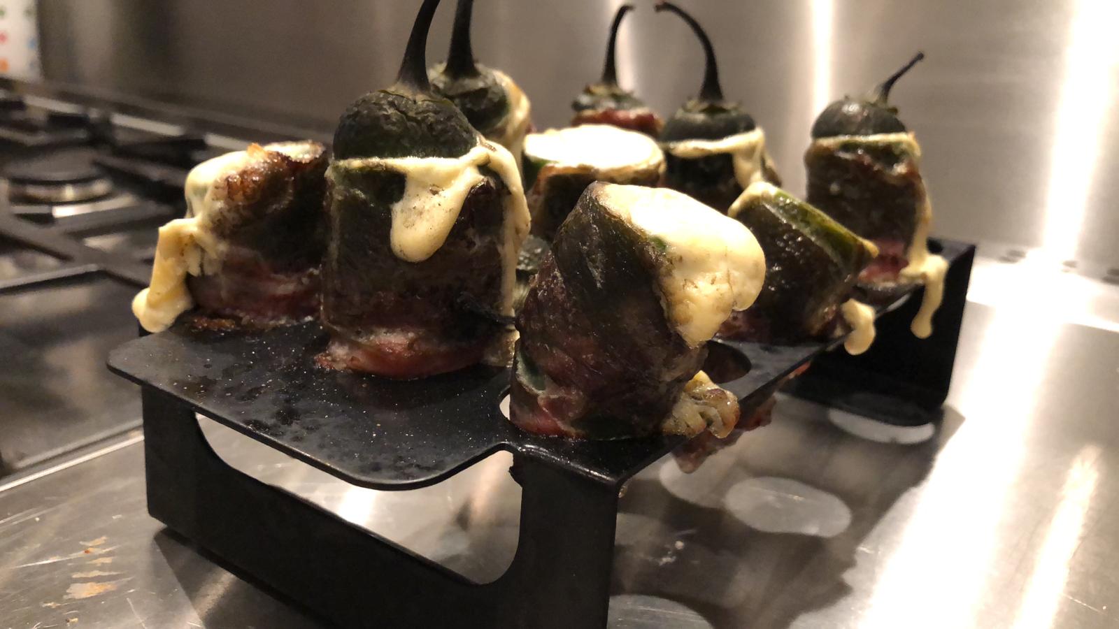 Yoder clean, sett on 370 Fahrenheit with the diffuser plate. After 45 minutes I loaded the yoder with veggies and atomic turds. After 15 minutes I checked them, the atomic turds where all covered in soot.