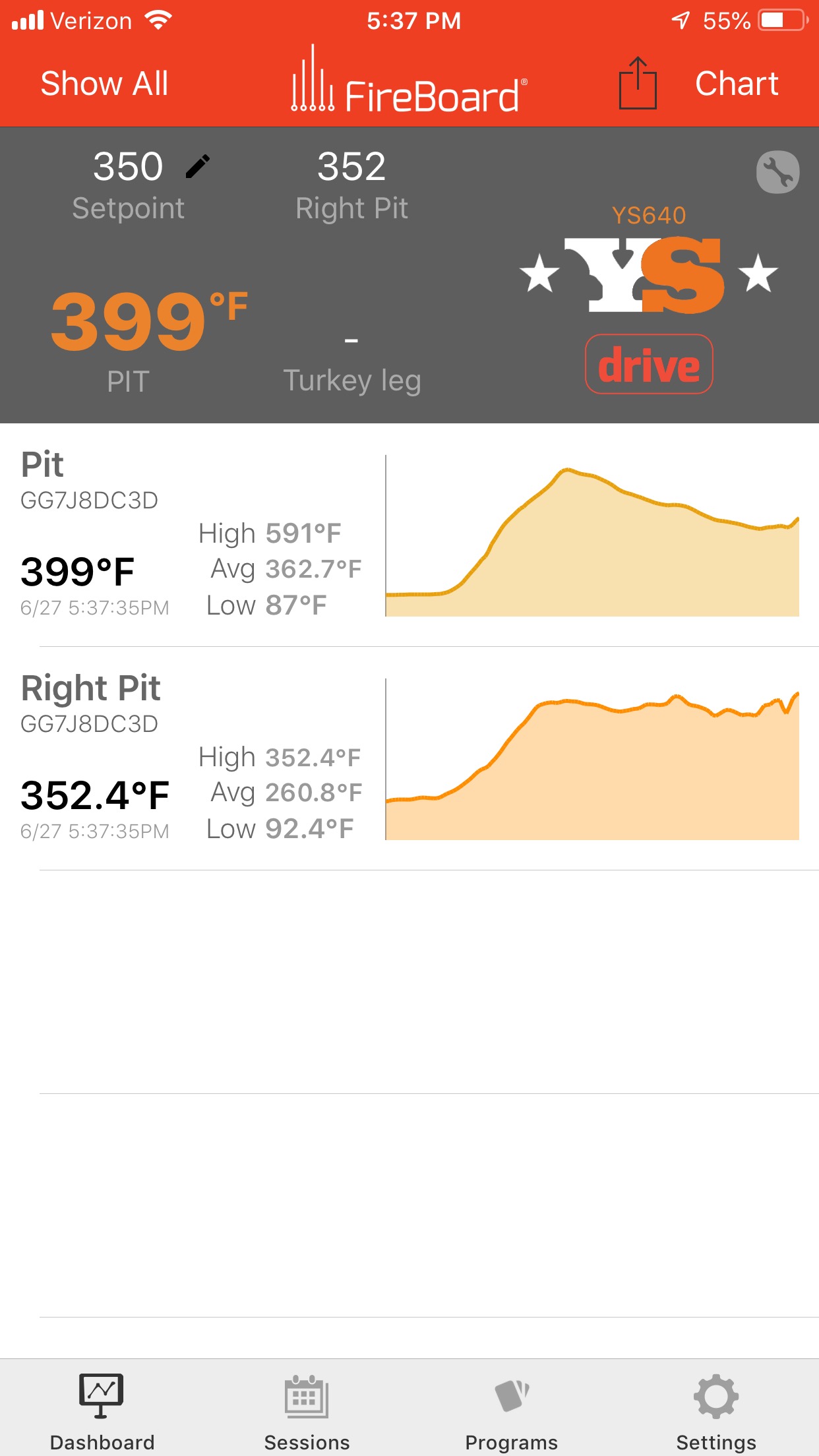 New Yoder YS640S owner here, purchased about a week ago. This is my first pellet smoker / grill, previously extensive experience with a water smoker and kettle. Today I decided to try cooking chicken direct / indirect (same as I would on a kettle) using the heat diffuser with access door, access door removed, 3 grill grates on the left side of the cooker. Concerns started at heat-up. I have read other posts about overshooting the set temp by 50 to 100 degrees or so, however mine overshot by 240 before it started to come down (set to 350, peak hit 592). At 592 it started to go into cooling mode, hit about 355 and then again shot up to 390. This was all before I put any food on the grill. This fluctuation seemed to continue throughout the cook period. Is this experience just because of the diffuser with access door? Pellets are lumberjack hickory. Damper fully open.