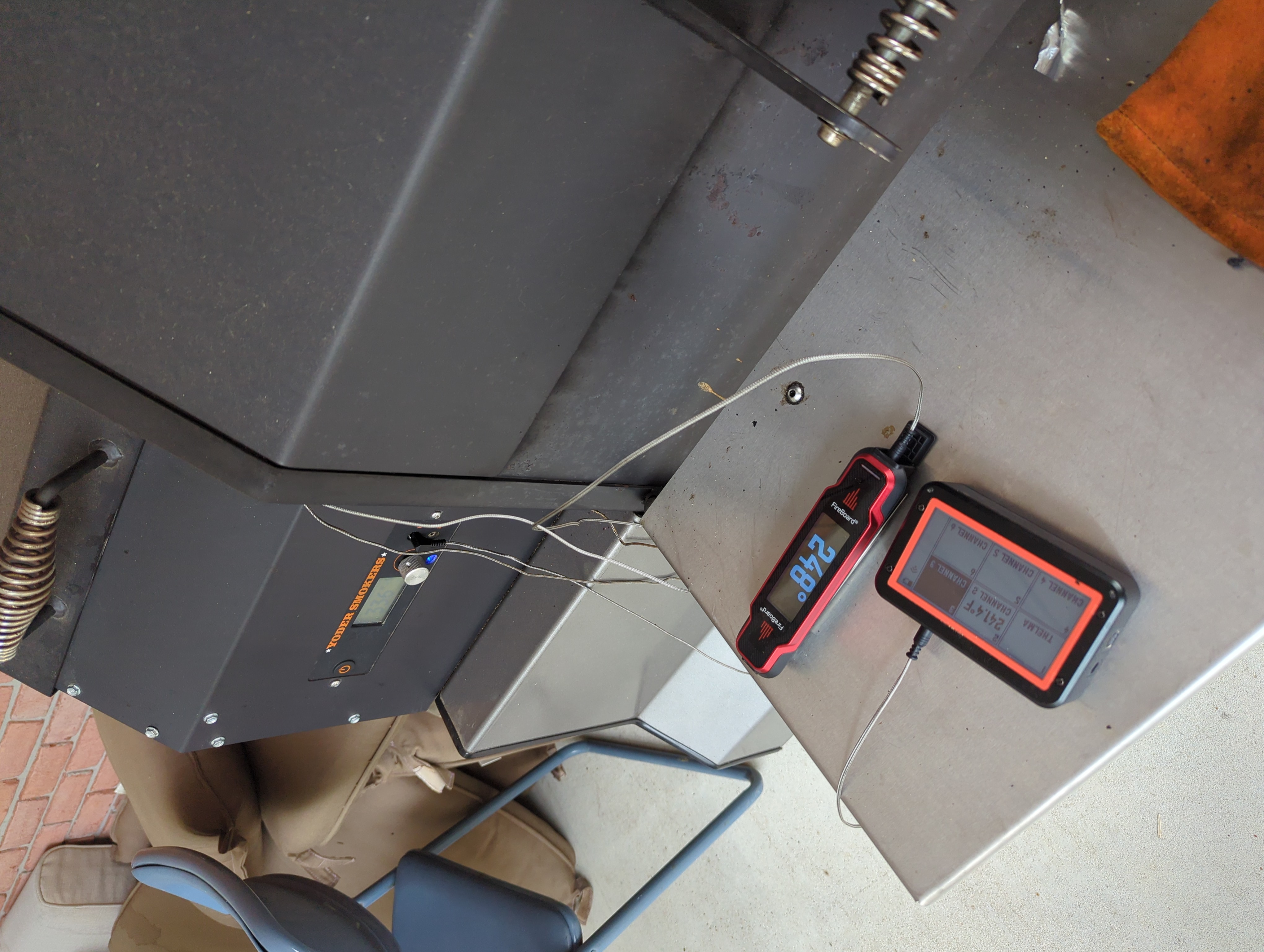 I have been checking my cooking box temperature with the probe from the Fireboard and comparing it to the Pit temperature. As you can see in the attachment the temperature difference is substantial. With a pit temperature set at 250F the cooking box is 206F. I set the thermocouple at the cooking grate level near the pellet fire.