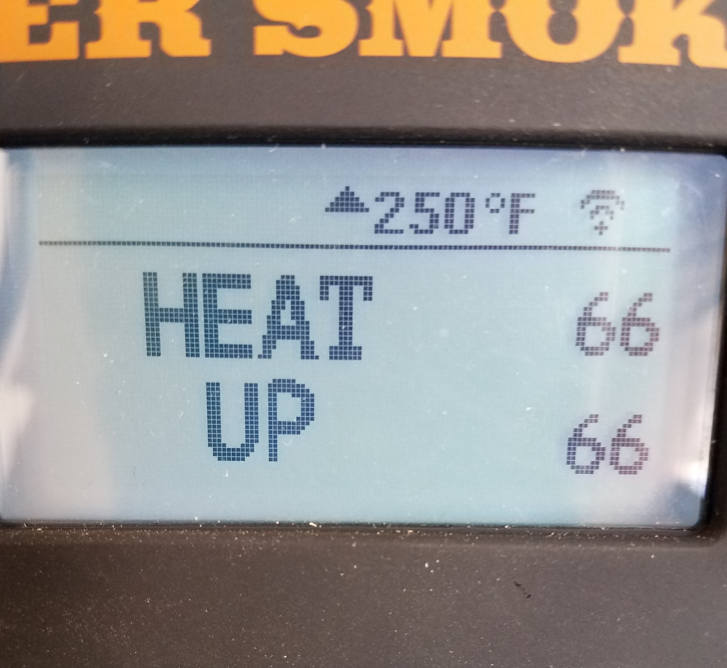 After getting the probes placed, I closed the probe port door and closed the cooking chamber lid. I plugged in the cooker, pushed the power button, and pushed the START button, then set the controller to 250 degrees by turning the dial counter clockwise. To verify, I went to the calibration screen and made sure that the calibration was set to 0 (zero).