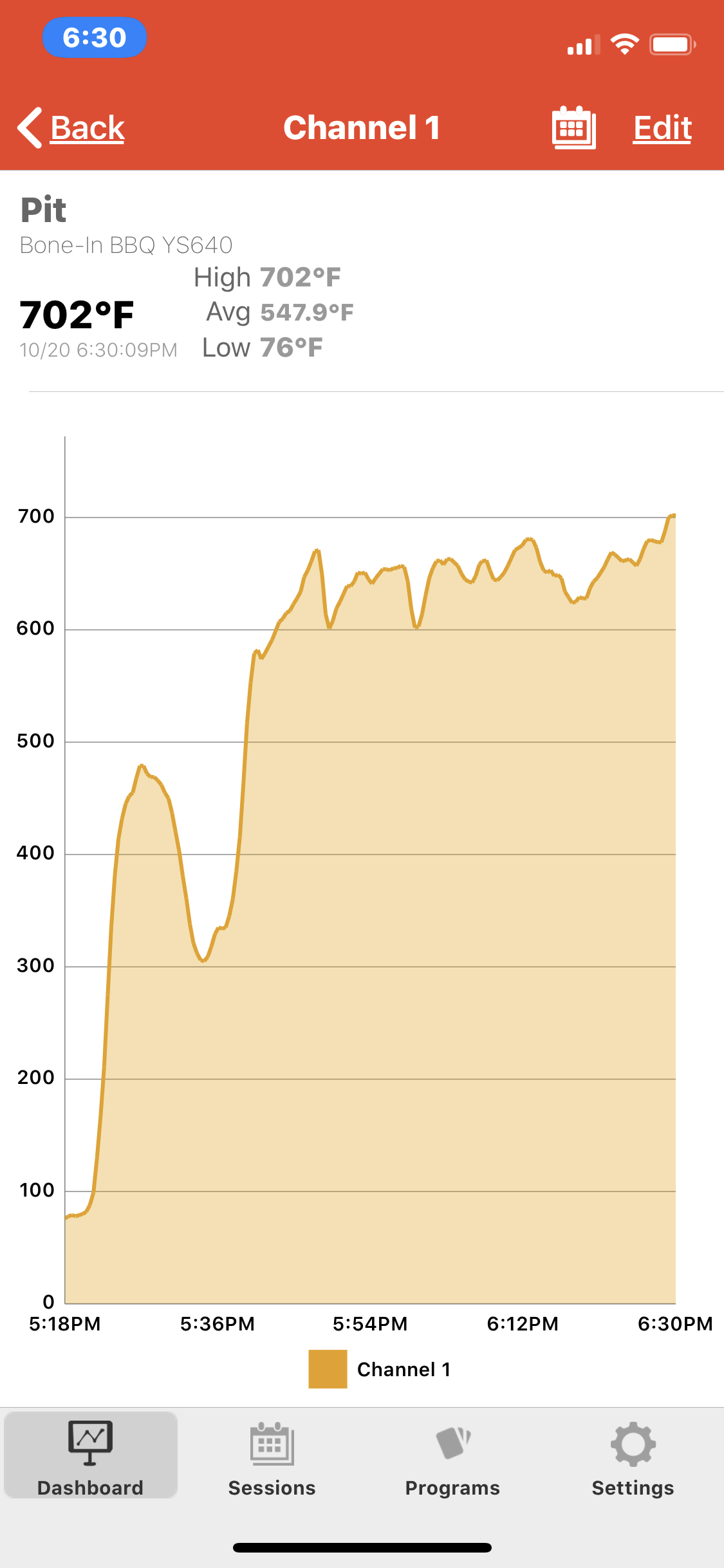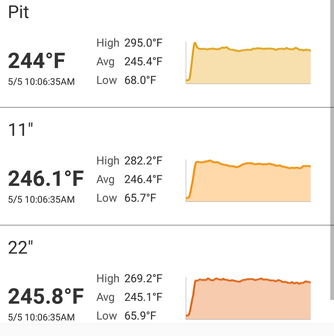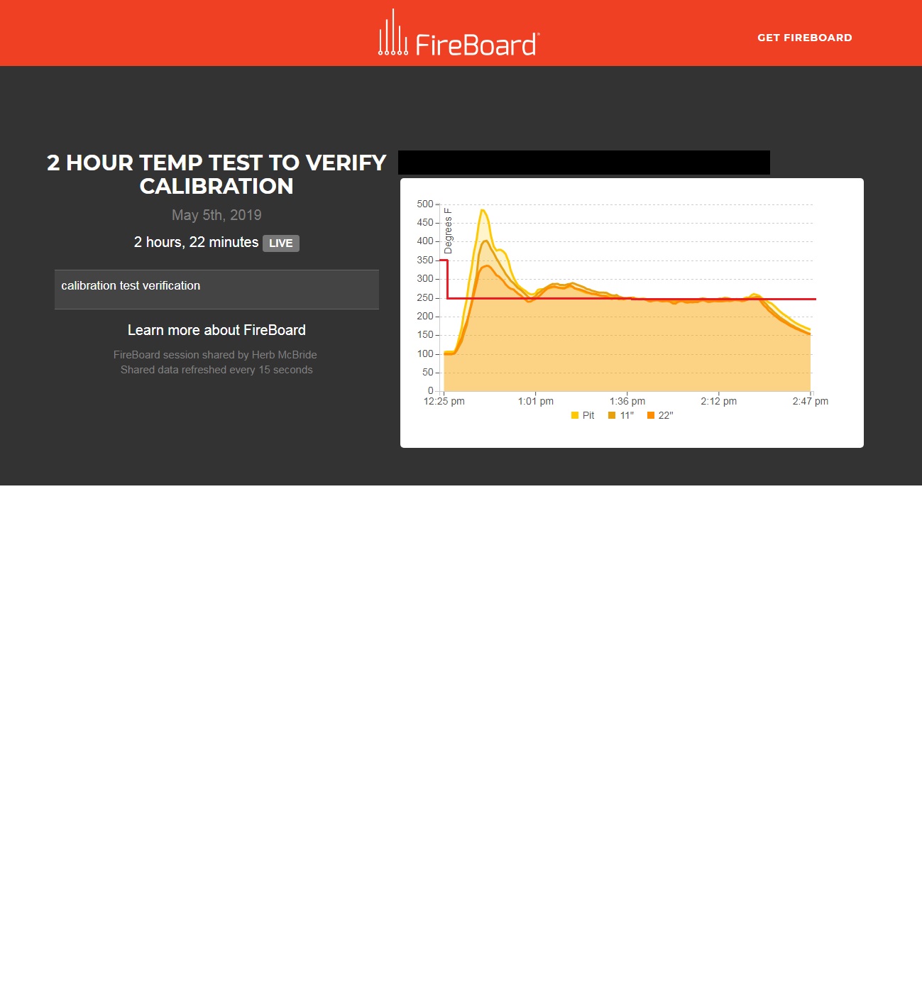 I let the cooker run for a total of approximately 3 hours, from pushing the START button until I pushed the power button to shut the cooker down. By the end of the session, the temperature of the display and the two grate probes were within 2 degrees of each other, and the overall temperature averages were within 1 degree of each other. I would say that the cooker and ACS controller are calibrated, and performing as they were designed.