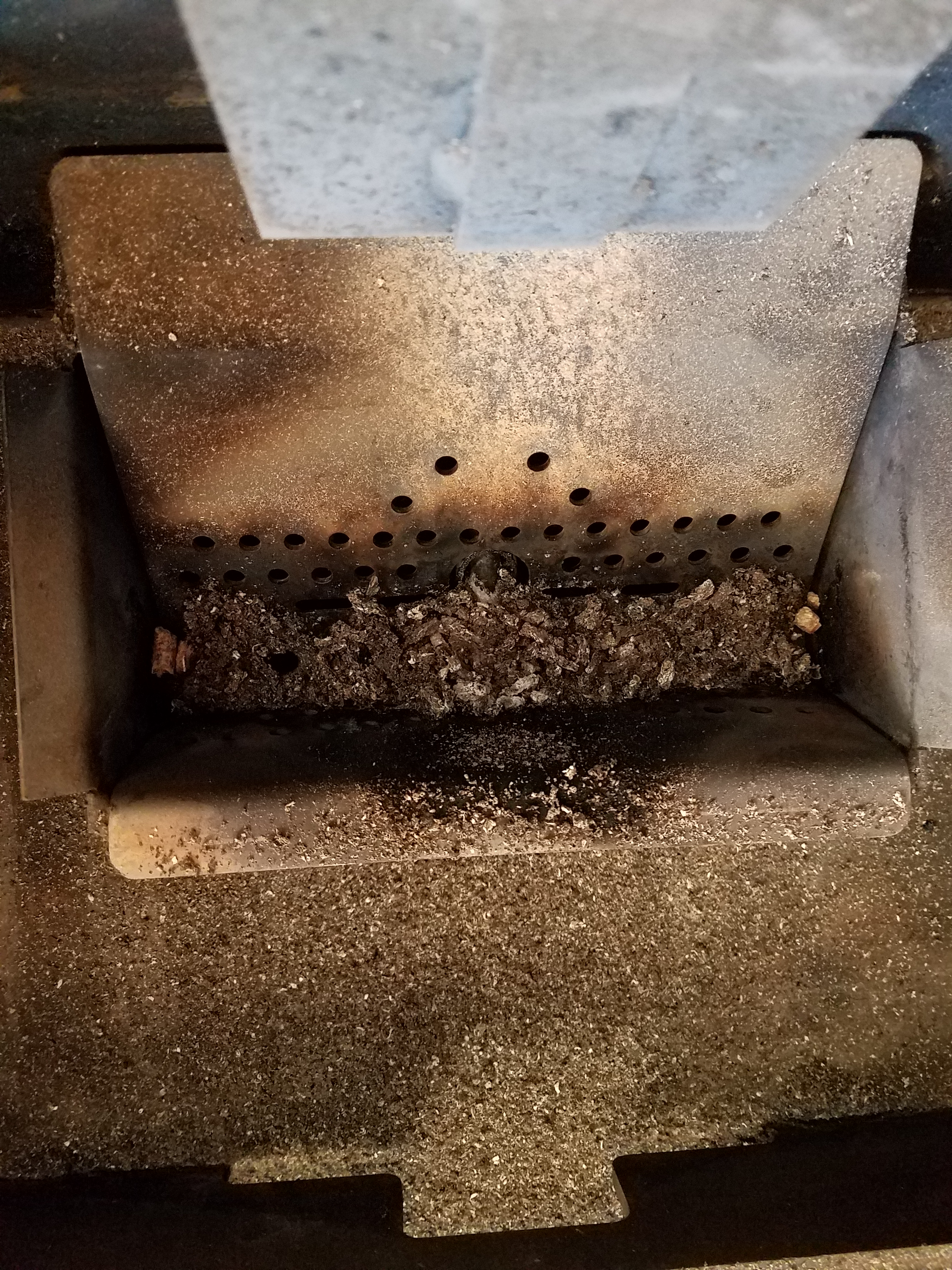 As a side note, here is a photo of the residual ash from the 3 hour calibration test, using a 50/50 mix of BBQR's Delight pecan and cherry. You can use this to compare with your residual ash if you decide to do this calibration test. Notice the lack of any fluffy whitish fly ash. Unlike most other pellets, BBQR's Delight has no bark in the pellets, and are super consistent from bag to bag and pallet to pallet.