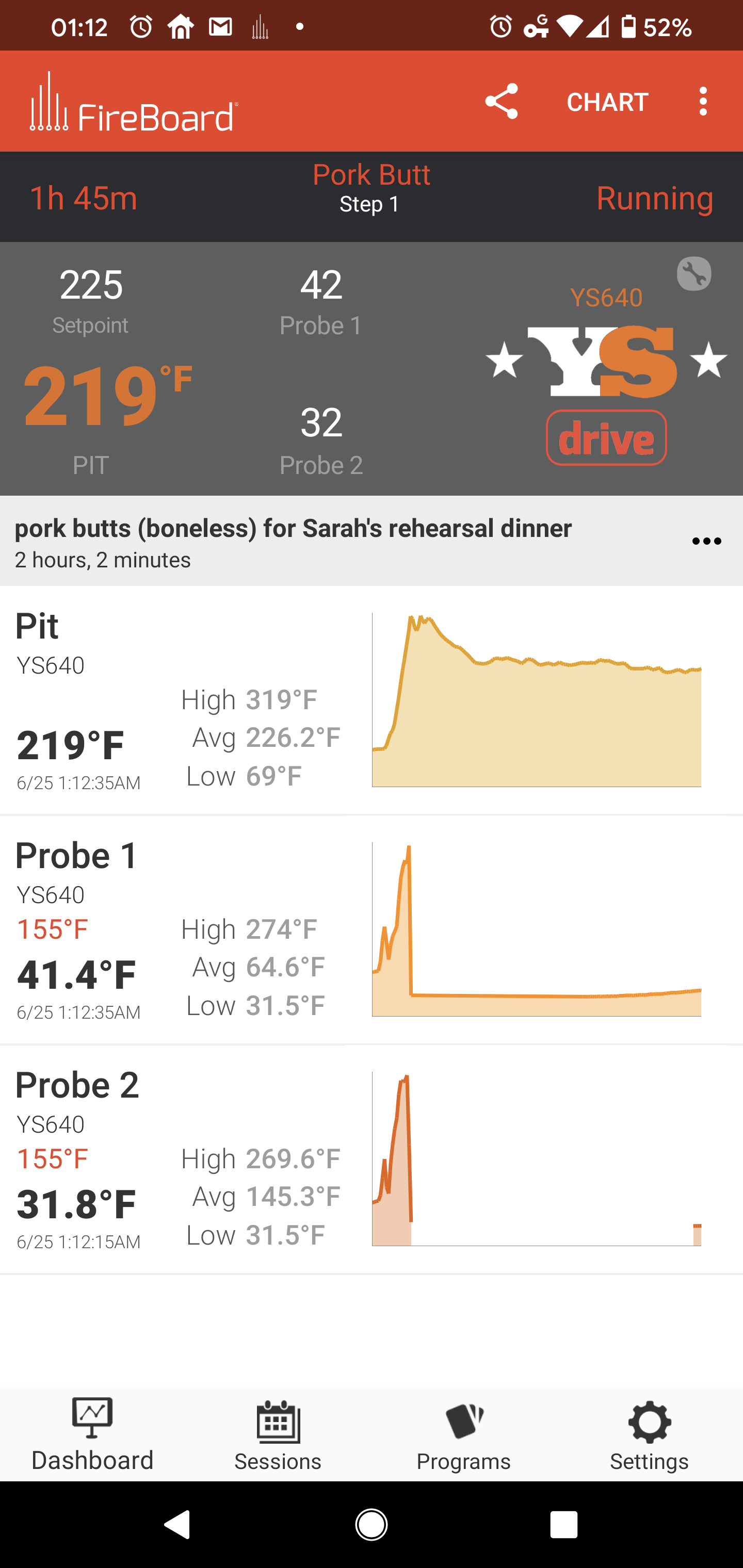 I just put on 2 pork shoulders (boneless apparently, new for me). When I opened the package to season them a few hours, the center of the package where the two butts met was frozen. Well, fast forward 6 hours, and I'm putting them on my 640. Got them on the rack, inserted the probes, spritzed, then went in to wash. Checked my app, and I had zero readings from the probes anymore. 1.5-2 hours later, they started to register again. Booth are reading a minimum of 31.5F. I thought for sure I had fried them with the spritz, but thankfully it just looks like a low-range limit.