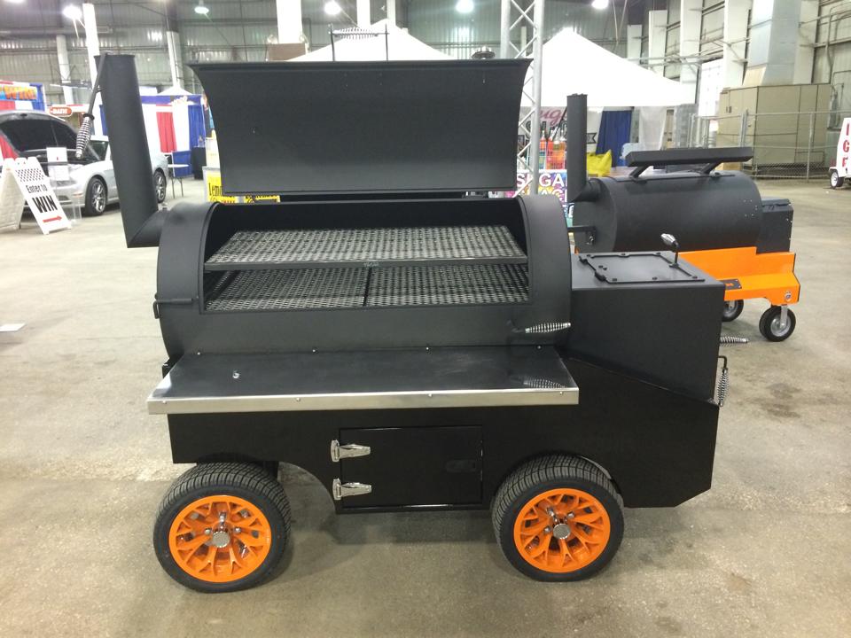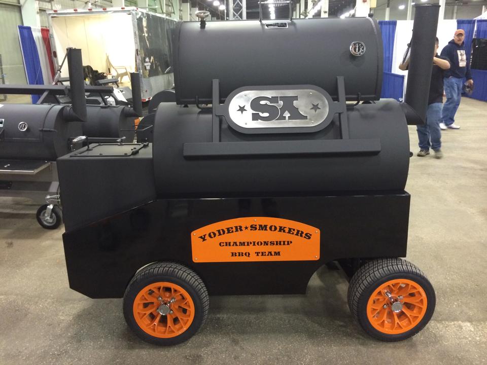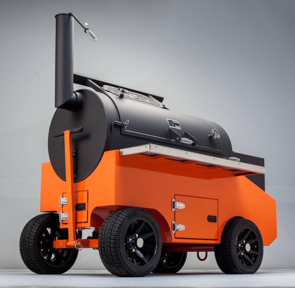 The new Yoder Smokers Cimarron. 26" x 54" on a custom competition cart. Starting at $6,195.00