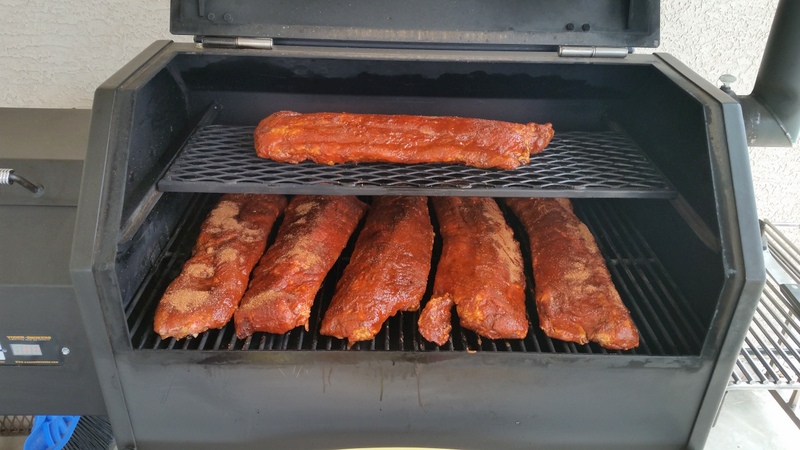 bluezhawg wrote:In Celebration of our Nation's Independence we are smoking a mess of Baby Backs on our YS-640. We have six fresh racks of ribs dry brined with salt, oiled and dusted heavily with our special rub. YS-640 started at 350 no foil on the diffuser running 50/50 mix of Pecan and Cherry pellets. Upon closing the lid the temp is set at 250 and we are T minus 3.5 hours to digging' in...We won't be looking' cause looking' aint cooking' Having studied the info herein and speaking directly with Yoder Herb here and in person I feel confident we will be dining in style poolside in a few hours! I will have more pictures in a few hours!