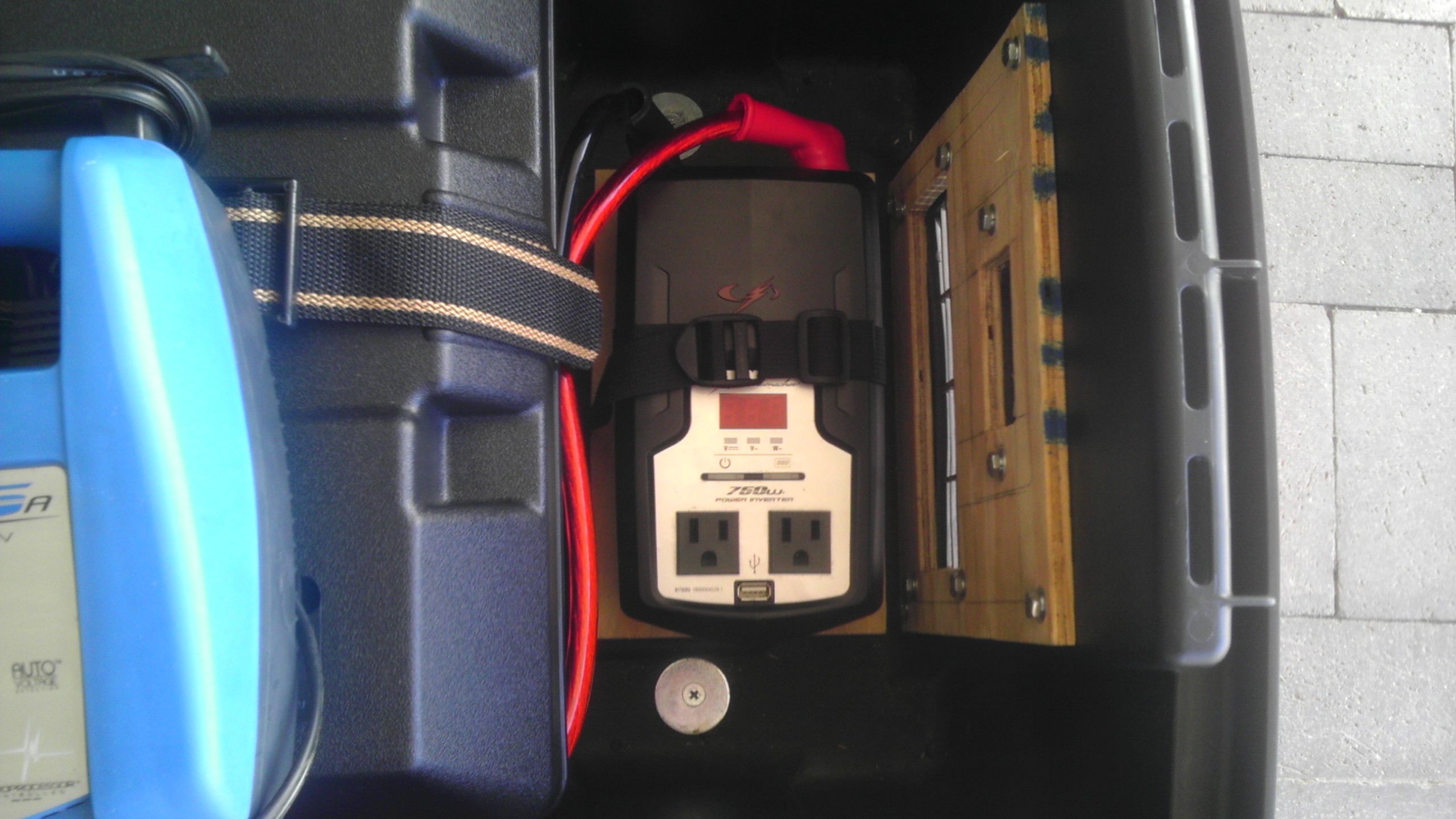 Yoder_Herb wrote:Here are pictures of the portable power box I made to run a YS1500 and a YS640 at BBQ Comps. This will run both cookers for an entire comp, and probably the entire weekend if needed. We also have run LED lights and an electric knife with no issues. Batteries are type 27 deep cycle and wired in parallel. The 12vdc inverter is wired by attaching the positive lead to one battery and the negative lead to the other battery. This allows the inverter to drain power from both batteries as though they were one big battery. The 12vdc charger is wired the same as the inverter.