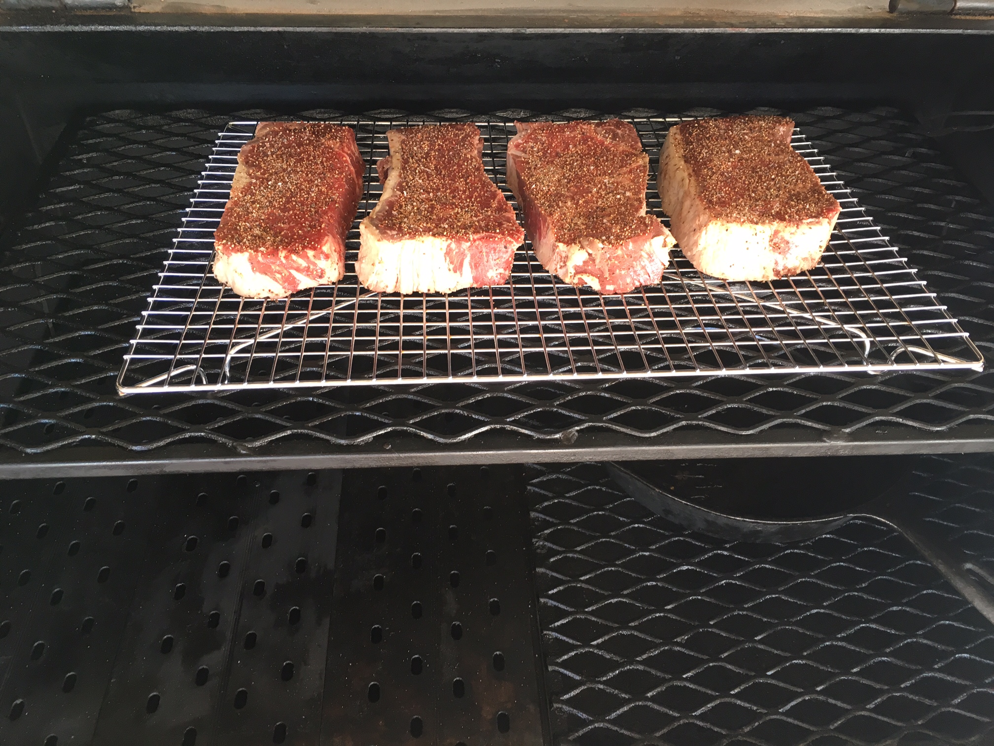 To change things up, I decided to show the difference between doing a normal reverse sear using the optional grill grates, and flipping the optional grill grates over for a griddle or pan-like sear on a YS640.